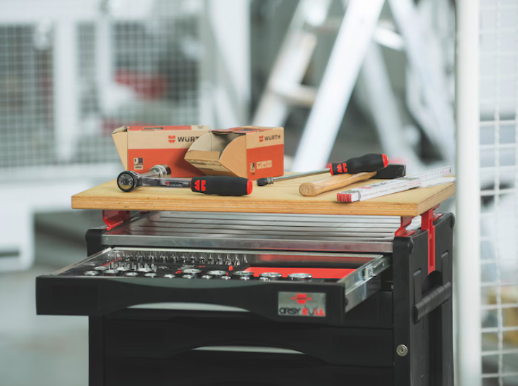 Optimal geeignet für Werkzeuge und Kleinteile. Einteilung mit Trennelementen und System-Einlagen möglich. Schubladen sind mit Zentralverriegelung und Einzelsicherung erhältlich.