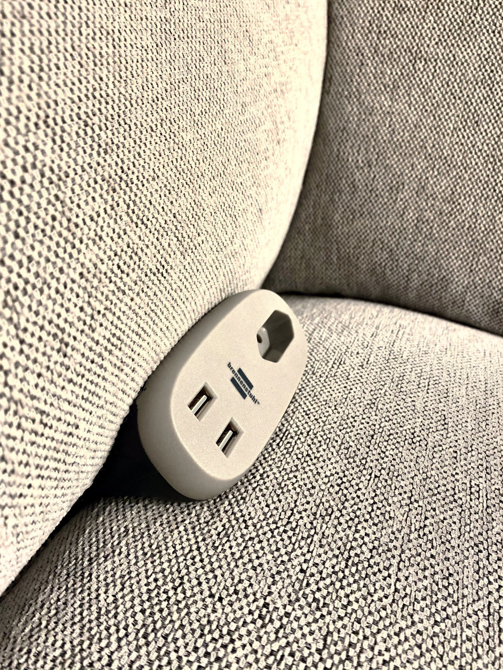 Die Sofa-Steckdose ermöglicht eine praktische Stromversorgung direkt am