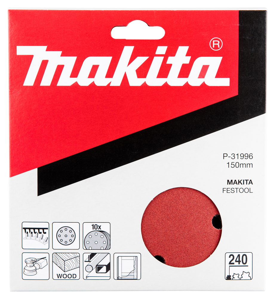 Schleifpapier Ø 150 mm mit einer feinen 240er Körnung ideal geeignet für Farb-, Holz- und Metalloberflächen. Schnelle und praktische Befestigung durch Klett-Aufnahme. Garantiert ein gleichmäßiges Ergebnis.