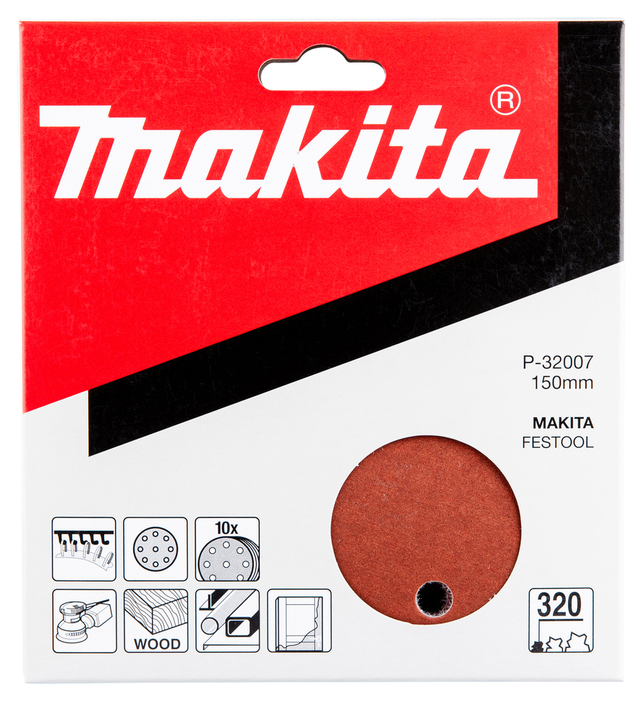 Schleifpapier Ø 150 mm mit einer feinen 320er Körnung ideal geeignet für Farb-, Holz- und Metalloberflächen. Schnelle und praktische Befestigung durch Klett-Aufnahme. Garantiert ein gleichmäßiges Ergebnis.