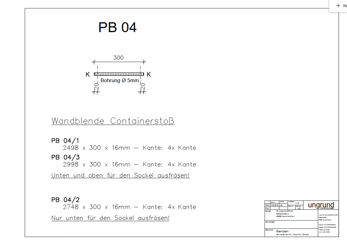 Produktinformationen "PB 04/1 Paßblende Wand, 2498 x 300 x 16, 4 x Kante, Unten und oben mit Sockelausfräsung"