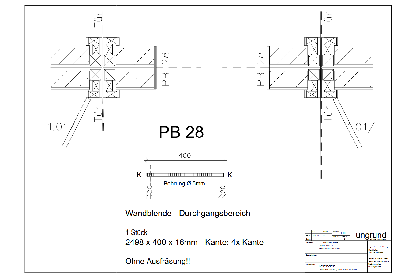 Produktinformationen "PB 28 Paßblende Wand, 2498 x 400 x 16, 4 x Kante, ohne Ausfräsung "