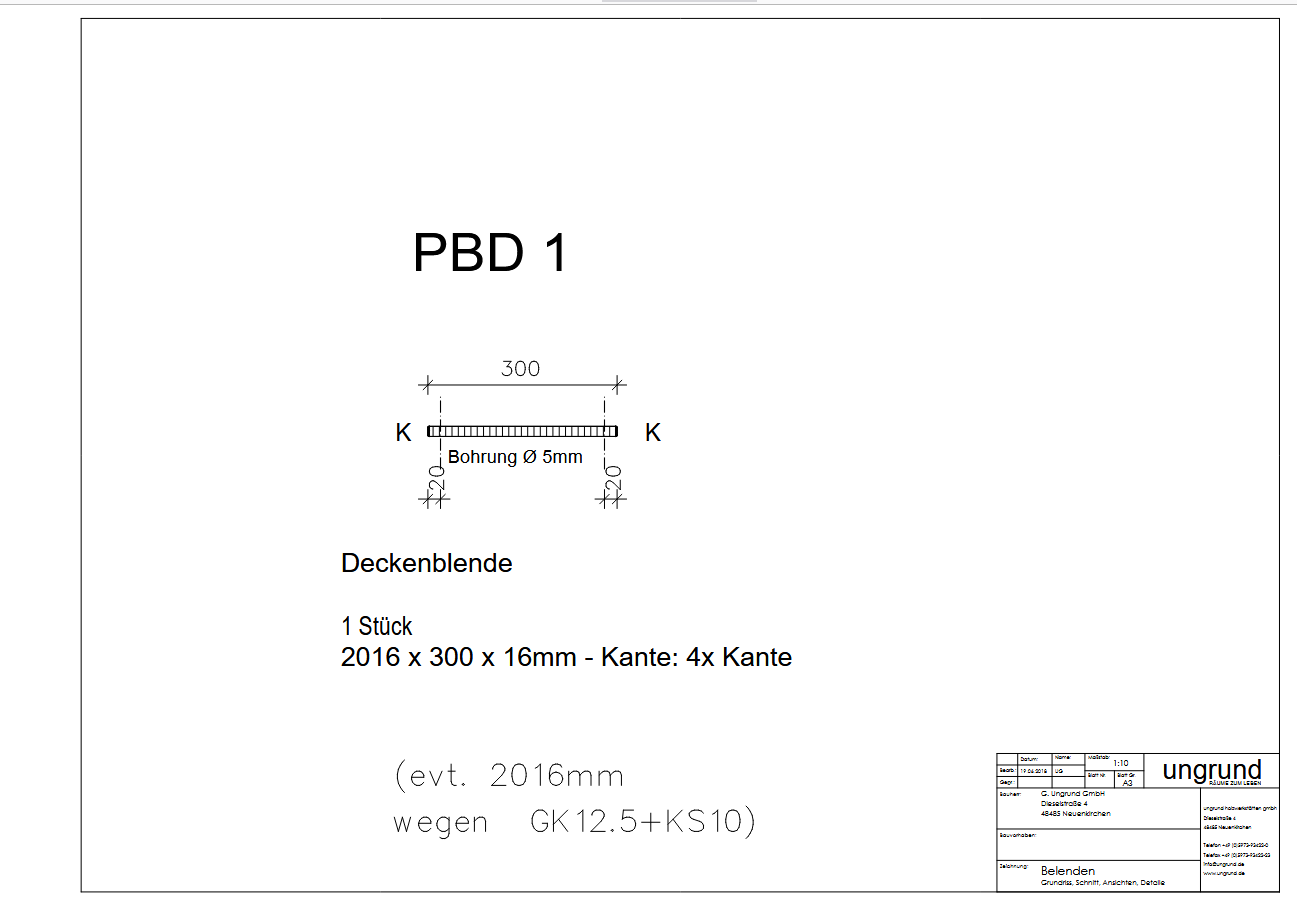 Produktinformationen "PBD 1 Paßblende Decke, 2016 x 300 x 16, 4 x Kante"