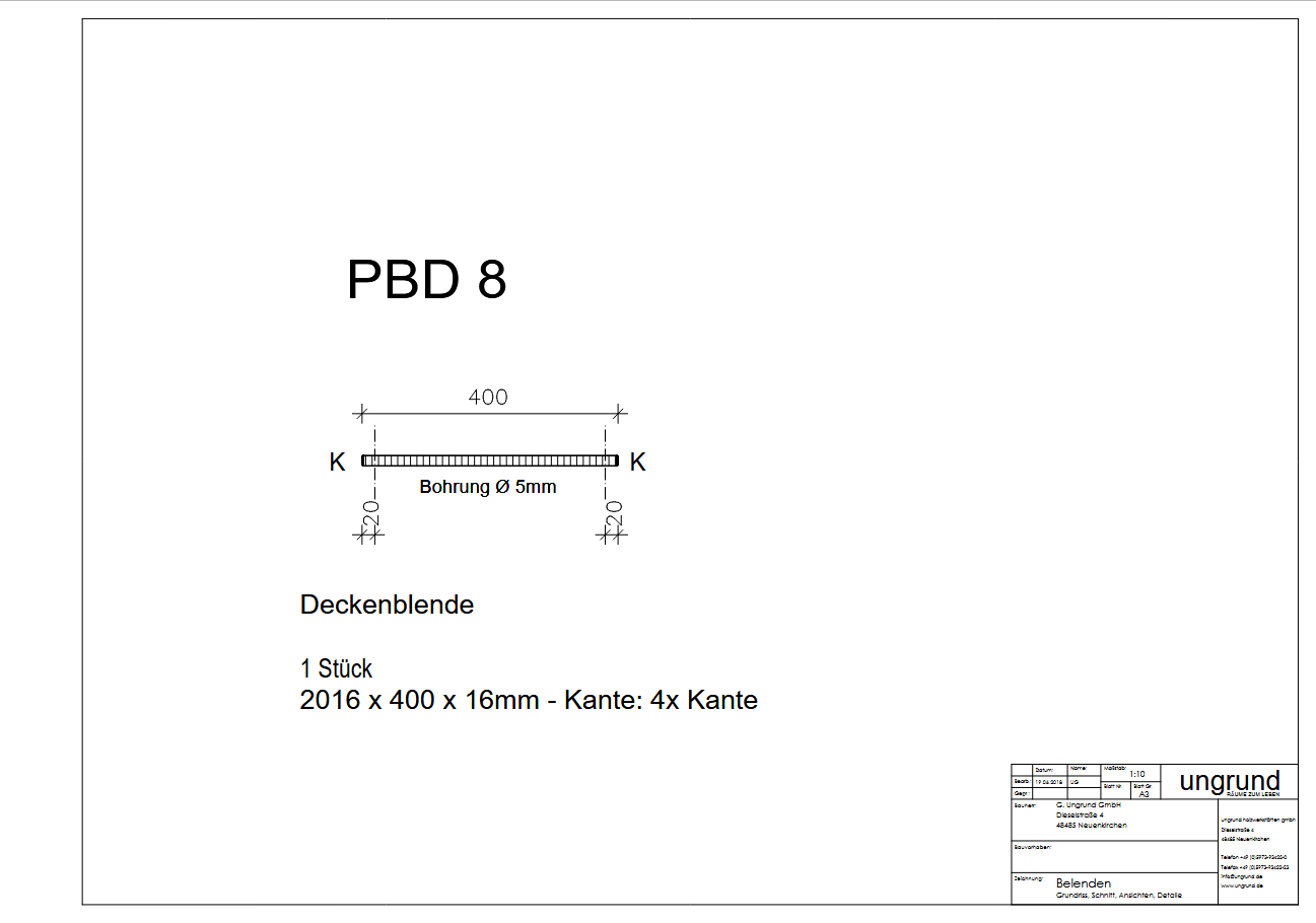 Produktinformationen "PBD 8 Paßblende Decke, 2016 x 400 x 16, 4 x Kante"