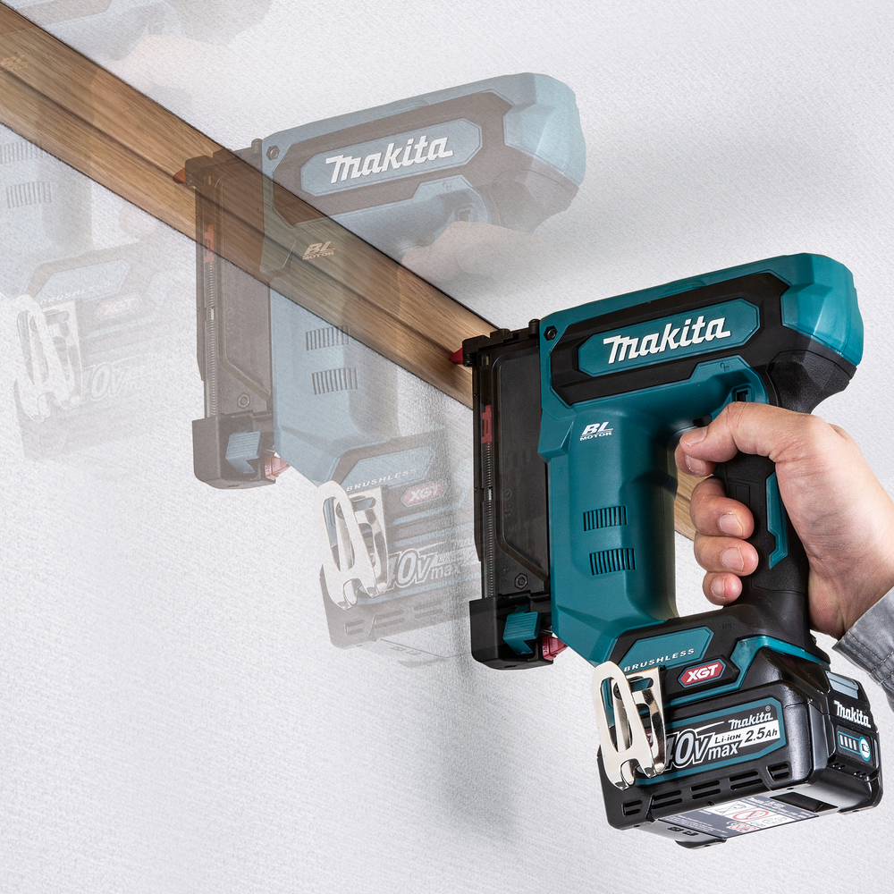 Akku-Stiftnagler für Arbeiten im Innenbereich wie die Installation von Fußleisten und Zierleisten. Die Maschine verfügt über einen Mechanismus mit geringer Reaktionskraft, der ein einfacheres Nageln mit langen Stiften und ein hochwertiges Finish ermöglicht. Kompatibel mit Stiften mit einer Stiftstärke von 0,6 mm, die kaum Spuren hinterlassen. Magazinkapazität bis 120 Nägel.