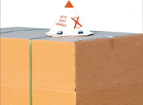 · durch zusätzliche Schlitze auch mit Umreifungsband zu befestigen · Anlieferung erfolgt flach zusammengelegt