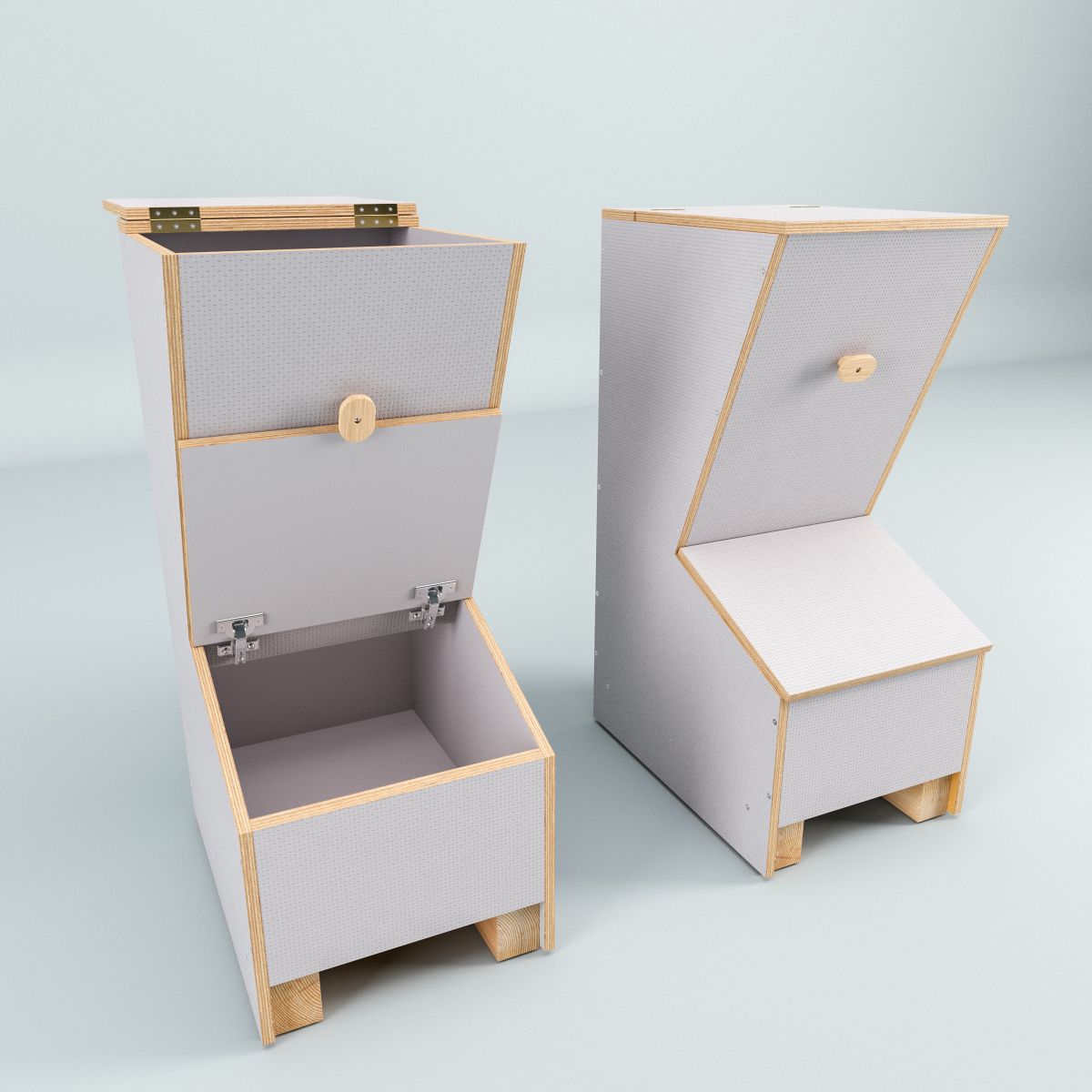 - Material: Sperrholz in verschiedenen Qualitäten, bei der Auswahl mit Siebdruckplatten befindet sich die glatte Seite innerhalb der Futterkiste
