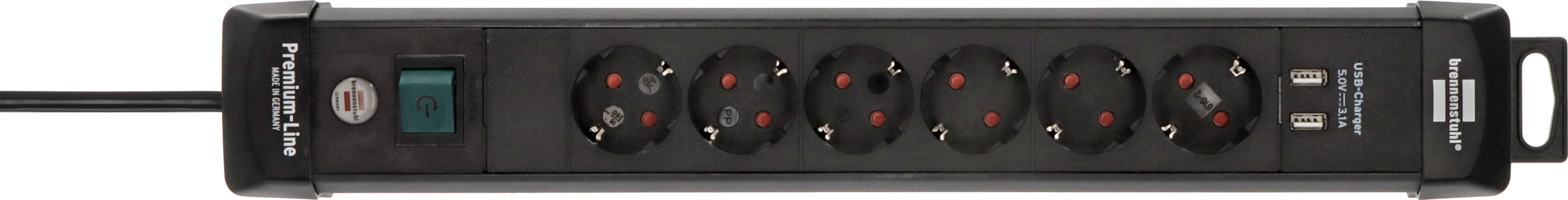Premium-Line Steckdosenleiste 6-fach mit Schalter und Aufhänge-Vorrichtung (Mehrfachsteckdose mit 3m Kabel und 2x USB, max. 3100mA, Steckdosenleiste Wandmontage, Made in Germany)