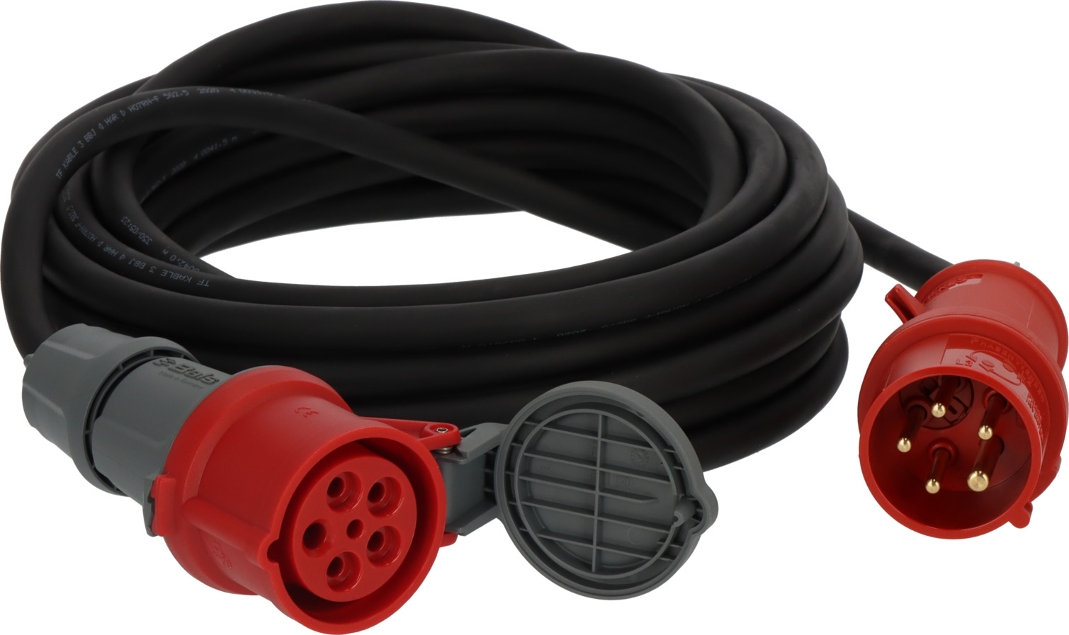 - 25m Spezial-Gummikabel mit CEE-Phasenwender und Kupplung mit Verschlussklappe, 5-polig