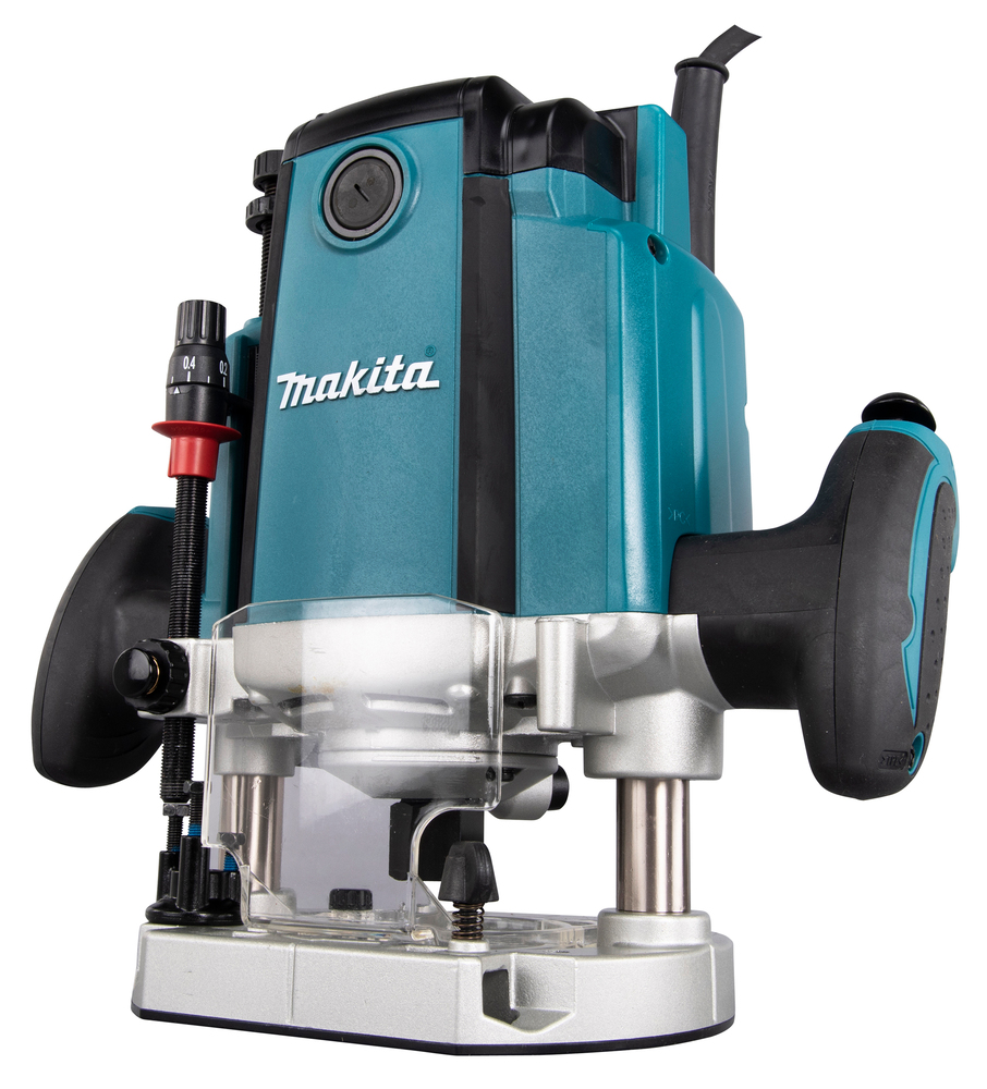 Werkzeugloser Kopierhülsenwechsel. Schnellverstellung der Eintauchtiefe mit Präzisionssteuerung und drei voreingestellten Tiefenanschlägen sowie leicht ablesbare Tiefenskalen. Der Auslöseschalter hat eine Sperrtaste für die Ein- und Ausschaltfunktion. Ein transparenter Schild schützt vor ungewollter Berührung und leitet die Späne vom Anwender weg. Mit verlängertem Tiefenkontrollknopf für die Verwendung bei der Montage unter dem Tisch. Kann auf den Kopf gestellt werden, wenn das Zubehör ausgetauscht oder nicht verwendet wird. Kann mit einer der mitgelieferten Staubabsaugung an ein Staubabsaugsystem angeschlossen werden. Von außen zugängliche Kohlebürsten für eine einfache Wartung.