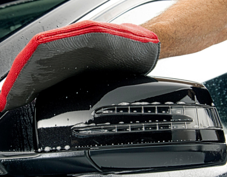 Die zu reinigende Fläche und das Reinigungshandschuh gründlich mit Wasser oder PH-Neutralen Autoshampoo spülen (wir empfehlen hochverdünnten R1 Reiniger Art. 0893125005). Anschließend mit dem Reinigungshandschuh, ohne Druckeinwirkung, die feuchte Oberfläche behandeln. Für die Reinigung mit dem Reinigungshandschuh muss die Oberfläche und das Reinigungshandschuh stets feucht sein. Um dies zu gewährleisten empfiehlt es sich auch während der Reinigung nach Bedarf die Oberfläche und das Reinigungshandschuh mittels einer Pumpsprühflasche zu befeuchten. Nach erfolgter Reinigung lassen sich Bearbeitungsrückstände einfach mit einem Microfasertuch entfernen und die Oberfläche ist ideal für das Polieren oder Versiegeln vorbereitet.