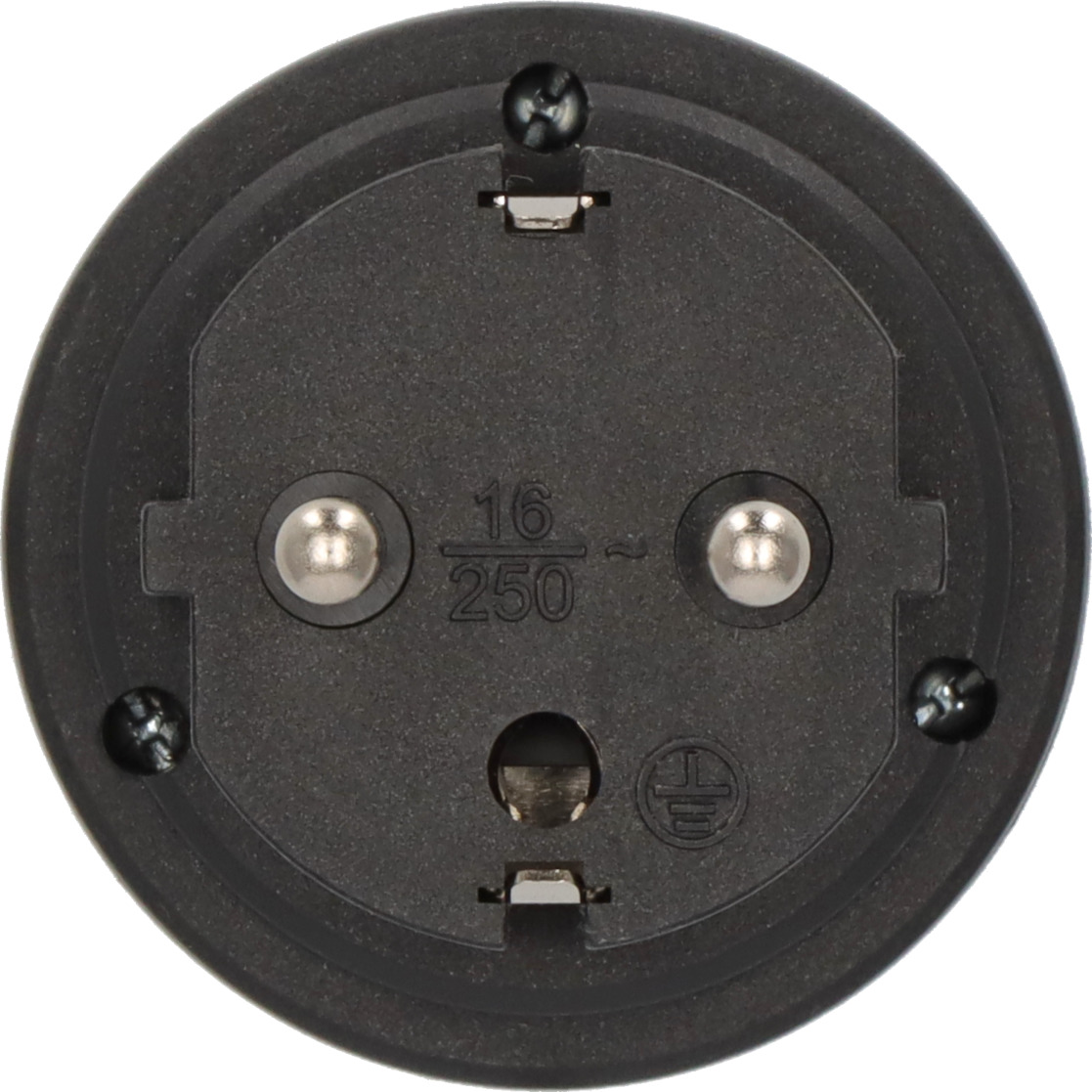 - Mit erhöhtem Berührungsschutz: Kunststoffplättchen verschließen die Kontakte der Steckdose