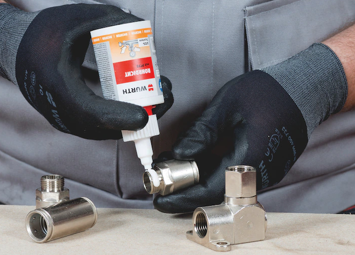- Dichtet metallische Rohrverbindungen nach ISO 7.1 (konisch-zylindrische Gewinde) bis R3“ ab. Auch für zylindrisch-zylindrische Gewinde geeignet, wenn sie mit ≥ 5 Nm angezogen werden oder in senk-rechter Lage ausgehärtet werden.
