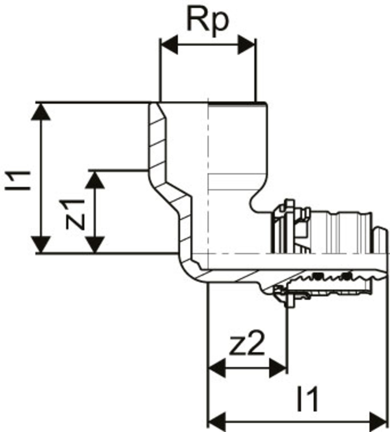 Produktinformationen "S-Press 90° Winkelmuffe 20-Rp3/4"FT"