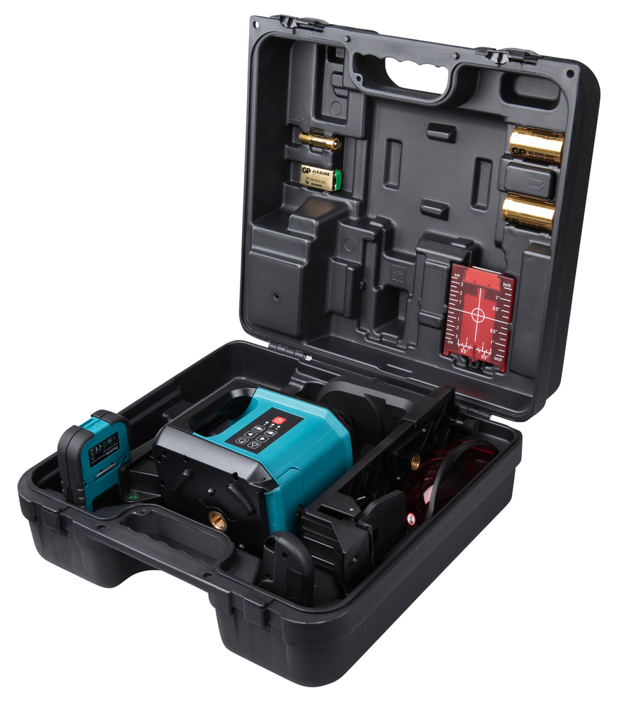 Ein handlicher Rotationslaser für horizontale und vertikale Vermessung. Geeignet für präzise Messung von Erhebungen, Neigungen und Höhen oder Überprüfung der exakten Fluchtlinien von Fliesen oder Wänden. Lieferung im Koffer.