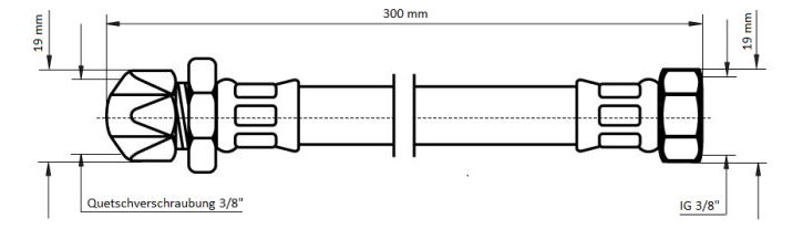 Produktinformationen "Sanibel Flex-Schlauch DN8 TW 3/8"Quetschv. x 3/8" IG 300mm"