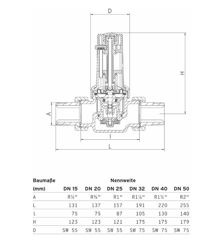 Datenblatt "Sanibel comfort-Druckminderer Nr. 315 ohne Manometer DN 15 (1/2") 1,5-6 bar aus Rotguss"