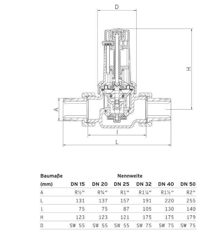 Datenblatt "Sanibel comfort-Druckminderer Nr. 315 ohne Manometer DN 20 (3/4") 1,5-6 bar aus Rotguss "