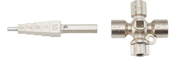 Universeller Schaltschrankschlüssel und Stufenschlüssel mit 16 Profilen in einem Werkzeug