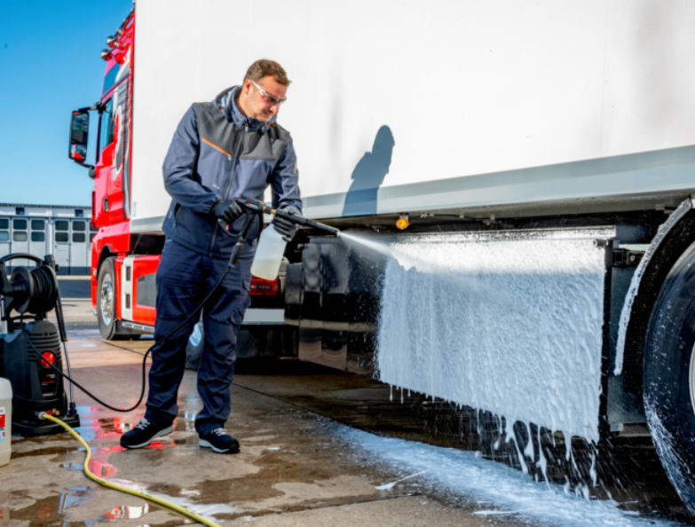 Zum Aufschäumen von Reinigungsmitteln bei der Reinigung von Karosserien, Chassis, Aufbauten, Planen, Werkstätten, Betriebsräumen und Ställen