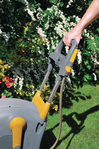 standsicherer und leicht transportierbarer Schlauchwagen mit einer geschlossenen Schlauchbox · leichtes, sauber und ordentliches Aufrollen des Schlauches mit seinem innovativen "Easy Rewind" Aufroll System mit automatischer Schlauchführung