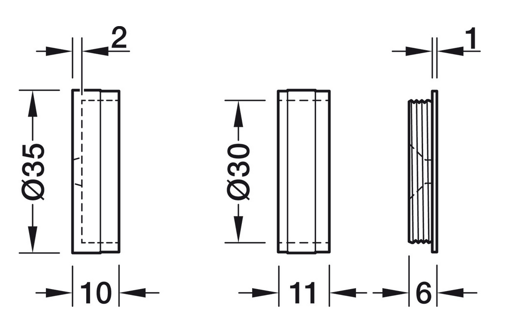 - 2 Überwurfteil auf das Schrankrohr aufschieben