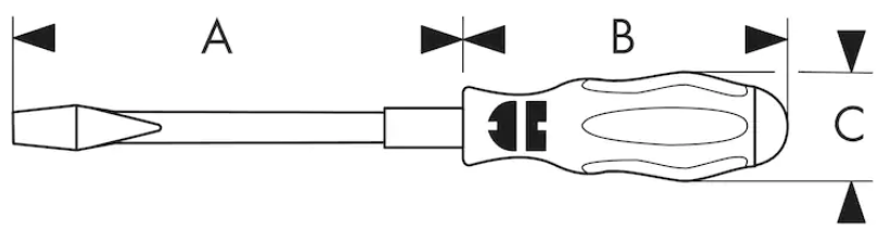 - Schnelle und einfache Auswahl des richtigen Schraubendrehers dank Klingensymbol und Schlüsselweite auf dem Griff