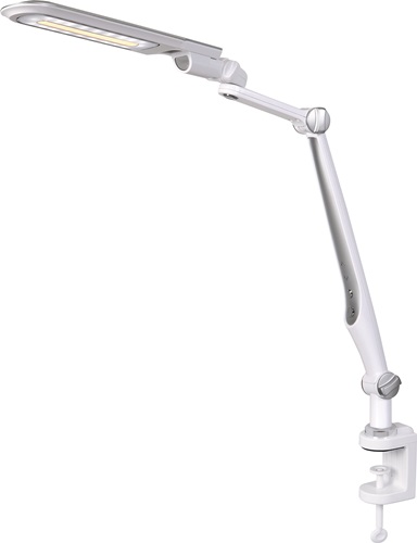 ABS/Eisen/PS ∙ mit Standfuß und Tischklemme ∙ Leuchtenkopf vielseitig einsetzbar ∙ stufenlos dimmbar ∙ Ausladung max. 660 mm - Höhe max. 600 mm ∙ Betriebsspannung 100-240 V ∙ Lichtfarbe 3.100 Kelvin - warmweiß, 4.400 Kelvin - neutralweiß, 6.100 Kelvin - tageslichtweiß ∙ Lichtstrom 550 Lumen ∙ Lebensdauer 20.000 Stunden ∙ gewichteter Energieverbrauch 9 kWh/1000h ∙ Effizienzklasse E (Spektrum A bis G) ∙ diese Leuchte enthält eingebaute LED-Lampen ∙ die Lampen können nicht ausgetauscht werden