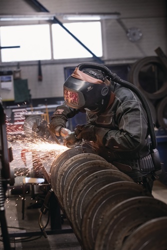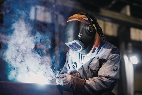 mit Adflo™ Gebläseatemschutzsystem · bietet in belastungsintensiven Umgebungen einen hocheffizienten Atemschutz im robusten und dennoch kompaktem Design · mit ergonomischer, einstellbarer Bebänderung · hochklappbares Schweißerschutzschild ermöglicht ein transparentes Schutzvisier mit weitem Sichtfeld für Schleif- und Einrichtarbeiten