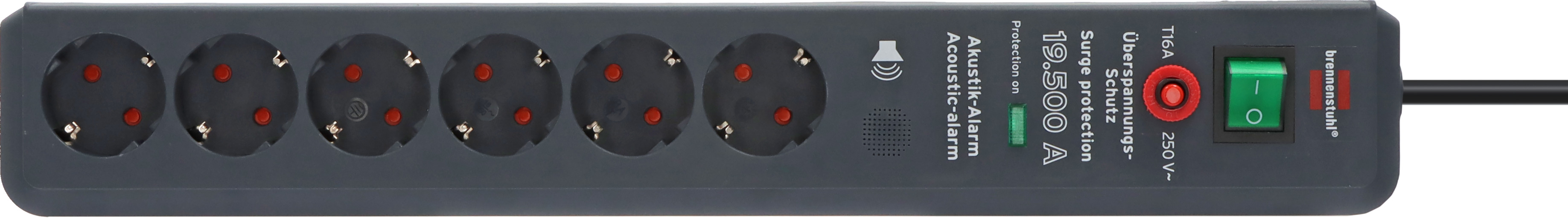 Steckerleiste mit akustischem Warnsignal bei ausfallendem Überspannungsschutz