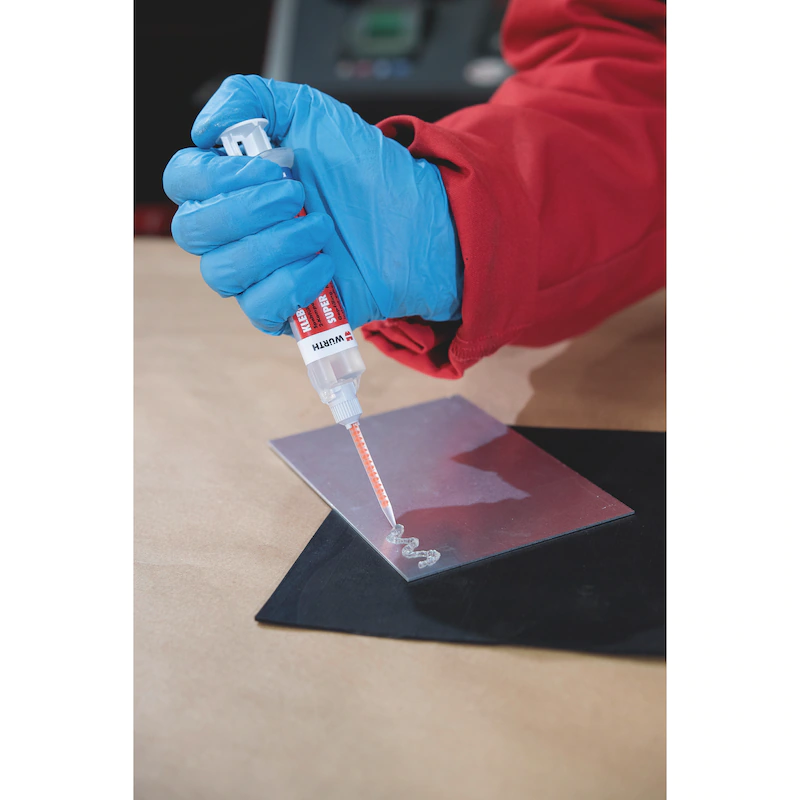 - Ideal zum Kleben von Teilen mit unterschiedlichen oder unbekannten Klebespalten (bis 6 mm) oder für Anwendungen bei denen Klebstoffüberschüsse vollständig aushärten müssen. Das hohe Spaltfüllvermögen und eine hohe Anfangshaftung auf den meisten Untergründen machen das System zu einem perfekten Reparaturprodukt. Die gelförmige Konsistenz verhindert ein Ablaufen selbst auf senkrechten Flächen. Für Verklebungen in Lebensmittel verarbeitenden Betrieben geeignet.