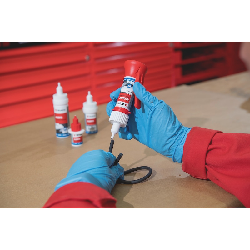 - Sekundenklebstoff zur Verklebung von Metall-, Kunststoff- und Gummiteilen mit- und unter einander.