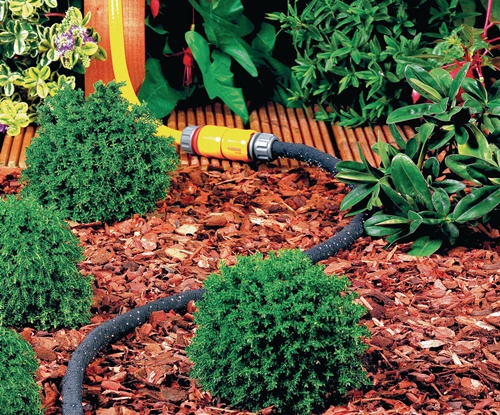 poröser Schlauch zur sanften Bewässerung von Rabatten, Hecken und Gemüsebeeten · das Wasser sickert entlang der gesamten Länge aus dem Schlauch · sehr wassersparende und gezielte Bewässerung