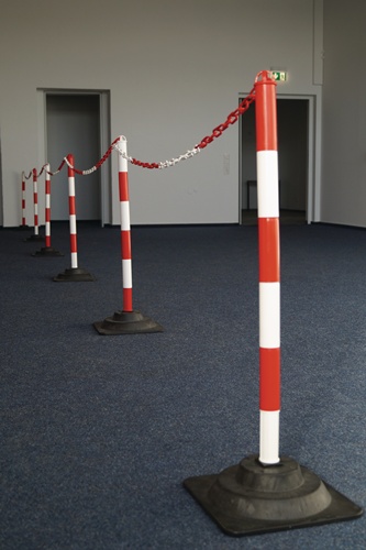 PE/PVC rot/weiß mit Hartgummifuß 6 Warnstäbe, 10 m Kette