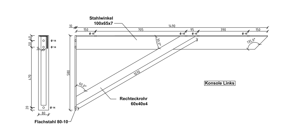 Stahlkonsole Verzinkt für Vordach /Links (von außen gesehen)