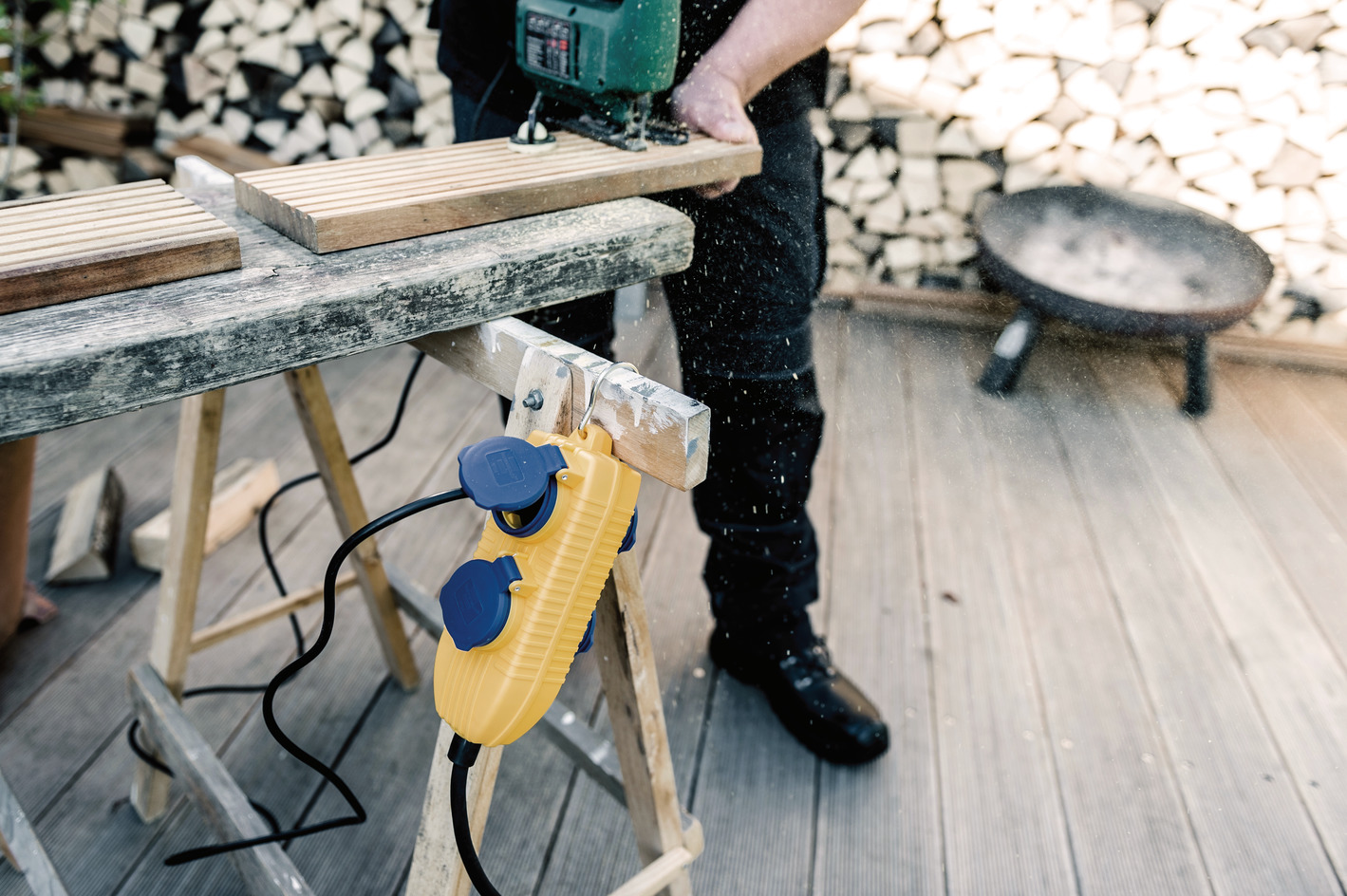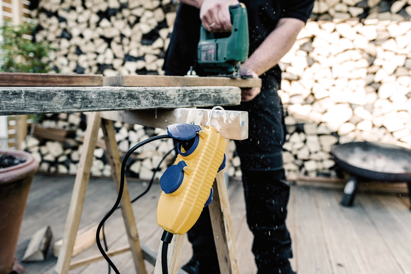 Steckdosenblock 4-fach für den Außenbereich (Verteilersteckdose außen mit 5m Kabel und Personenschutzstecker, schützt vor Stromunfällen)