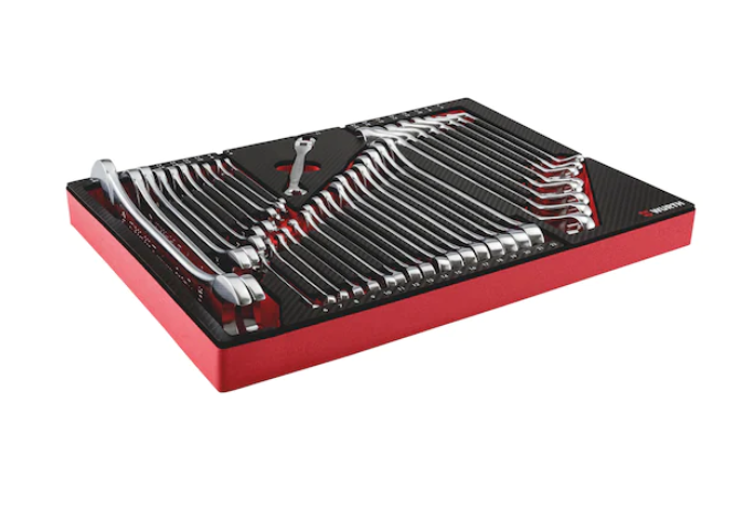 - Die Werkzeuggrößen sind auf der Einlage gekennzeichnet.