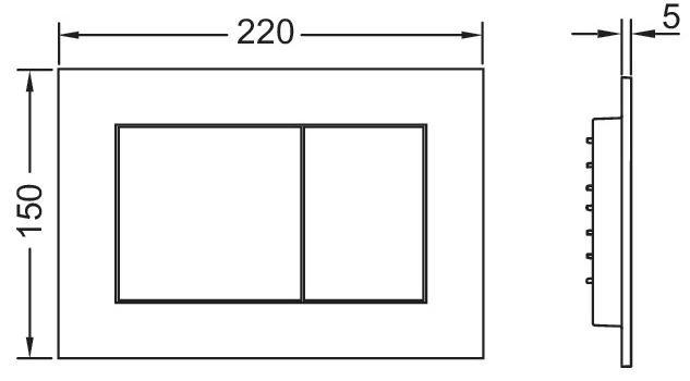 Sehr flache Kunststoff-Betätigungsplatte mit gummigepufferten Betätigungstasten, inklusive Betätigungsstangen und Befestigungsmaterial. Geeignet für den flächenbündigen Einbau in Verbindung mit dem WC-Einbaurahmen und dem TECE-Distanzrahmen. Kompatibel mit Einwurfschacht für Reinigungstabs. Abmessungen (B x H x T): 220 x 150 x 5 mm Bezeichnung: TECEnow Farbe: Weiß glänzend