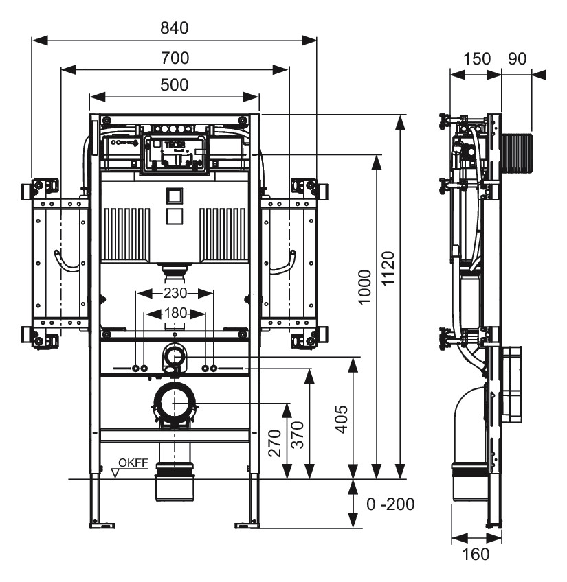 WC Element ist sowohl geeignet für die Einzelblockmontage, als Vorwandelement vor Massivwänden oder auch für den Einbau in Metall- oder Holzständerwänden.
