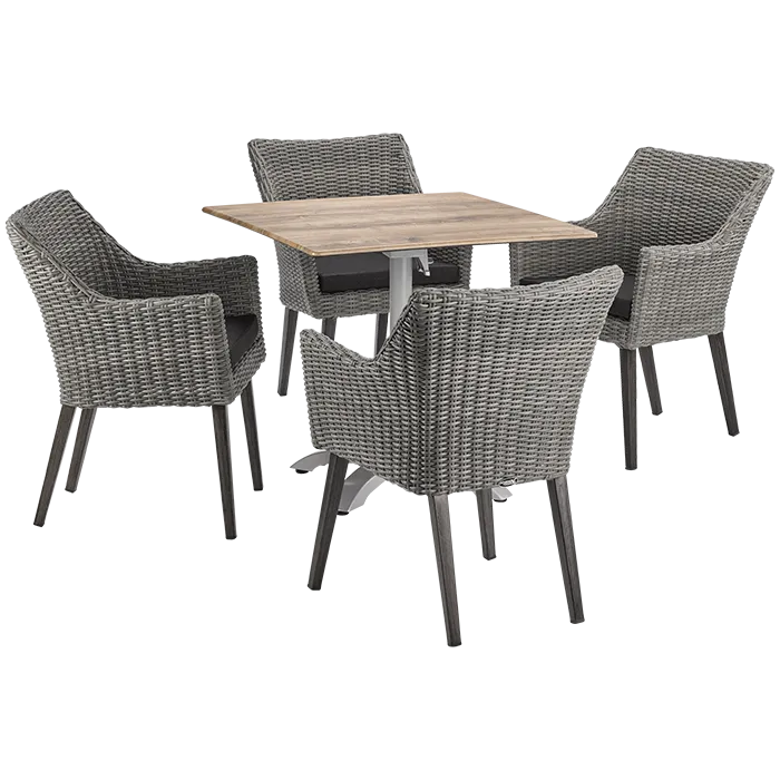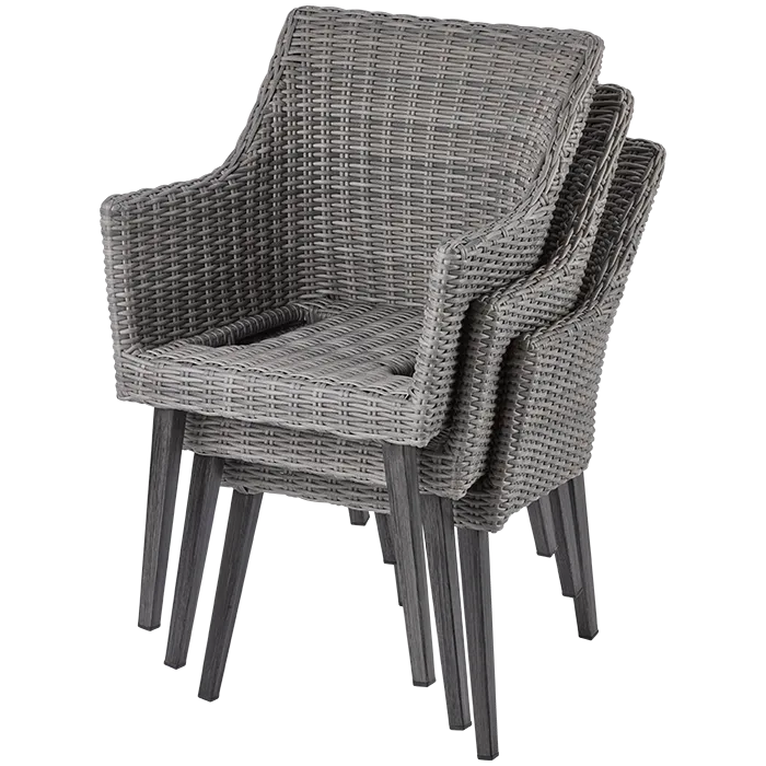 ...individuell und passt trotzdem für jeden Einrichtungsstil. Er wird noch bequemer und attraktiver durch ein Sitzkissen in Anthrazit. Das Gestell besteht aus pulverbeschichteten Aluminium. Dazu die elegante Holzoptik in Grau. Das Geflecht ist aus rund gewickelten Kunststoffgeflecht gearbeitet. Dieser Stuhl toppt auch damit, dass er UV- und Wetterbeständig ist.