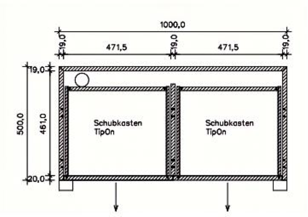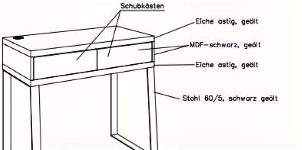 - Korpus aus MDF-schwarz geölt mit zwei Schubkästen als TipOn Auszug