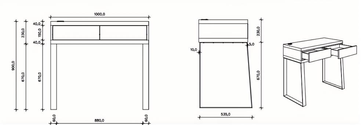 Produktinformationen "Tisch mit zwei Schubladen von ungrund"