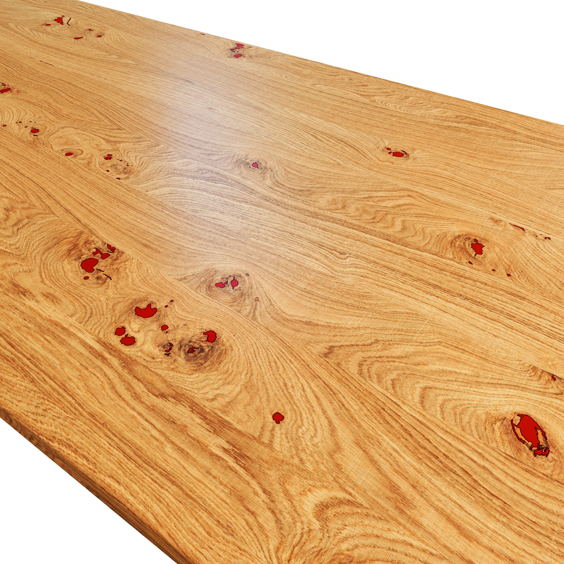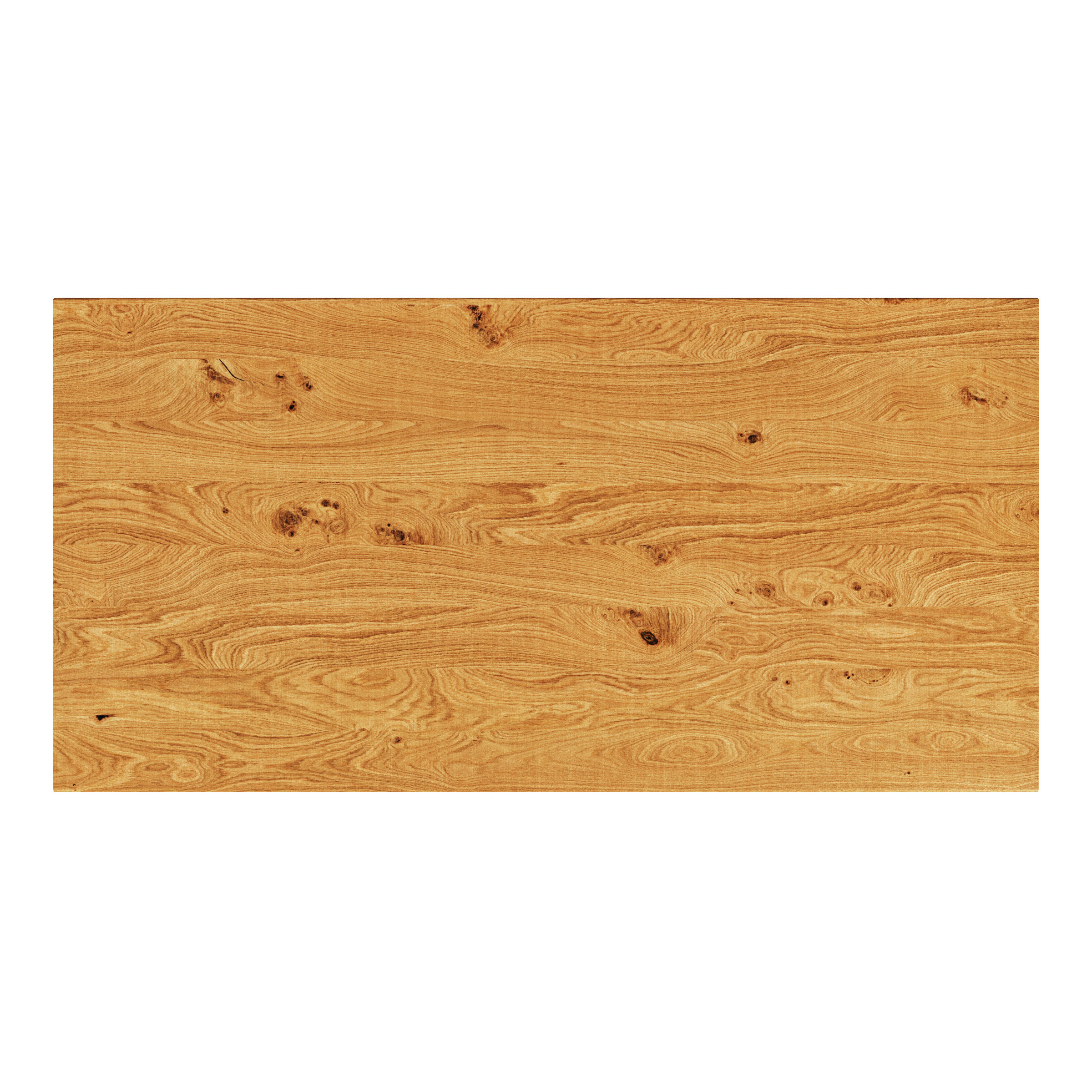 Durch die Verwendung von durchgehenden Lamellen entsteht eine besonders harmonische Maserung, die jede Tischplatte zu einem Unikat macht. Die geölte Oberfläche schützt das Holz, lässt es atmen und betont zugleich den warmen Charakter der Eiche. Dabei stehen dir verschiedene Farböle zur Auswahl, von naturbelassen bis geräuchert oder modern pigmentiert.