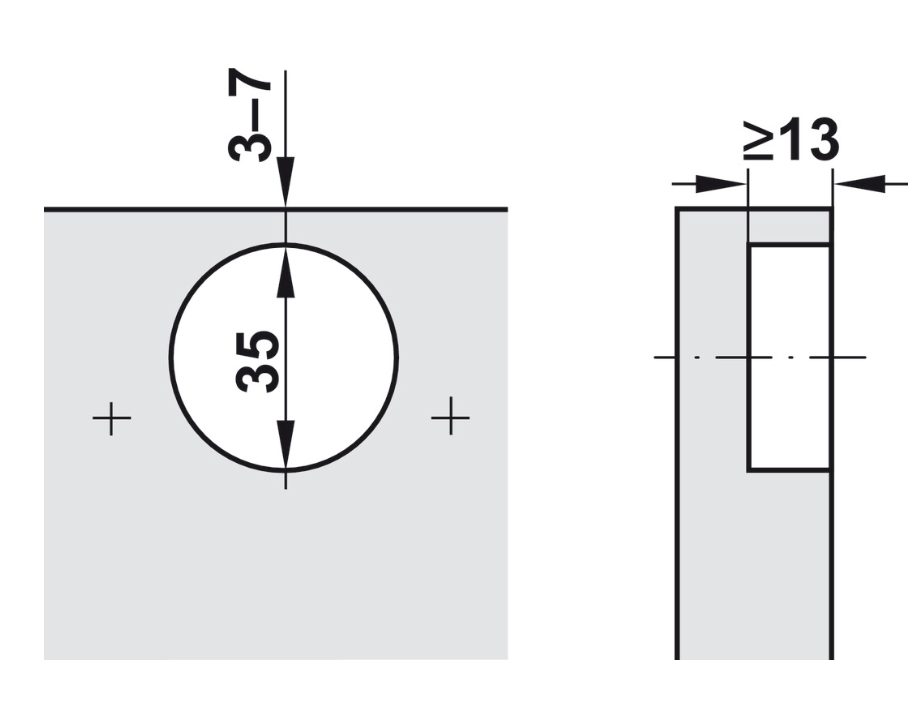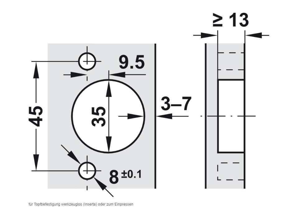 ...für Holztüren, Topfbefestigung: werkzeuglos, Modell: 71T3590, Bohrbild: 45/9,5 mm