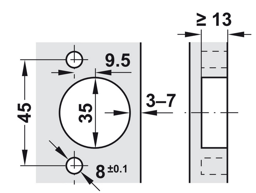 - Topf Bohrdurchmesser: 35,00 mm