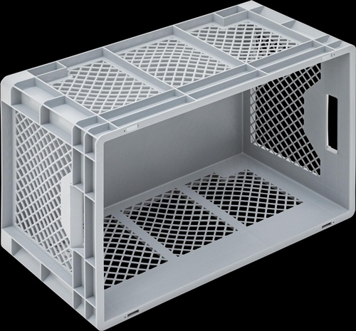 aus Polypropylen · für einen vielseitigen Einsatz im Lager- und Kommissionierbereich · abgestimmt auf Europaletten-Maß · resistent gegen die meisten Säuren und Öle · lebensmittelecht · temperaturbeständig von -20° bis +80° · Farbe grau · Boden geschlossen, Seitenwände durchbrochen