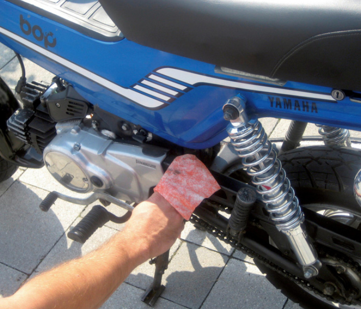 Nicht geeignet für Hochglanzoberflächen wie z.B. Autolacke und transparente Kunststoffe z.B. Visiere, Plexiglasscheiben.
