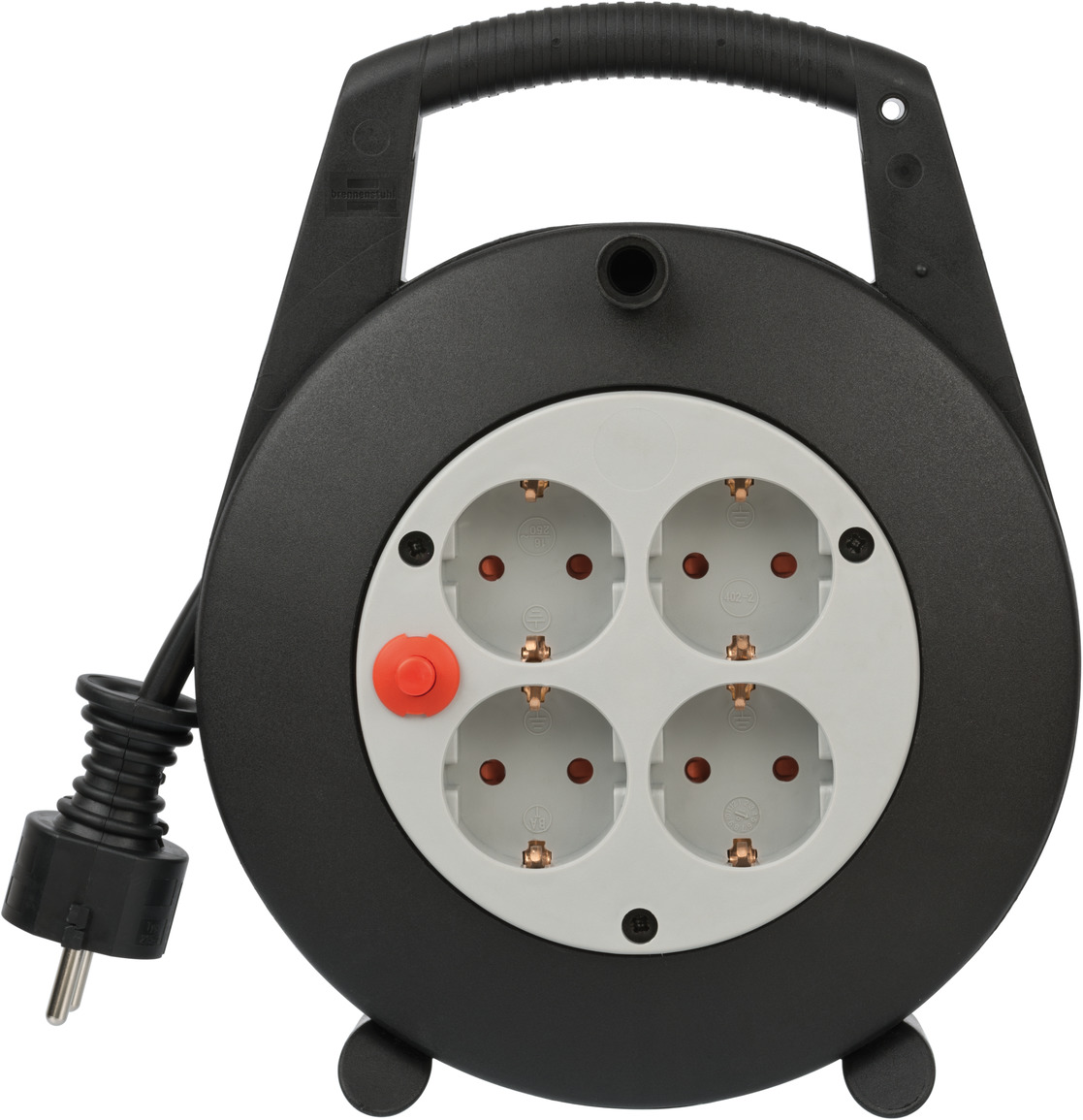 • Leichte und handliche Mini-Kabeltrommel mit 4 Schutzkontakt-Steckdosen, einem Überhitzungsschutz und erhöhtem Berührungsschutz