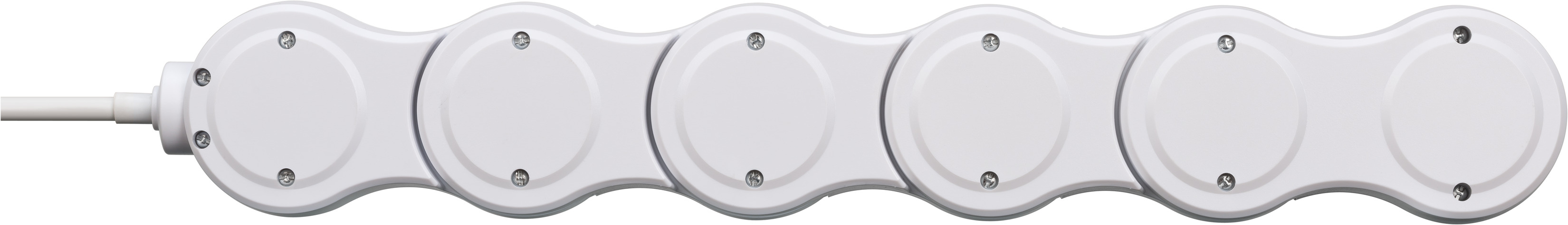 Wendige Steckdosenleiste aus hochbruchfestem Polycarbonat mit fünf Schutzkontakt-Steckdosen zur variablen Anordnung
