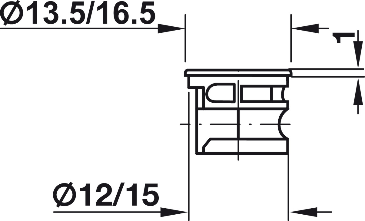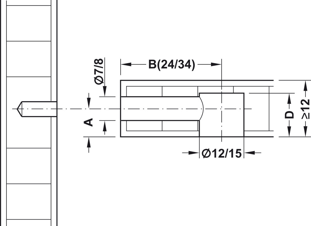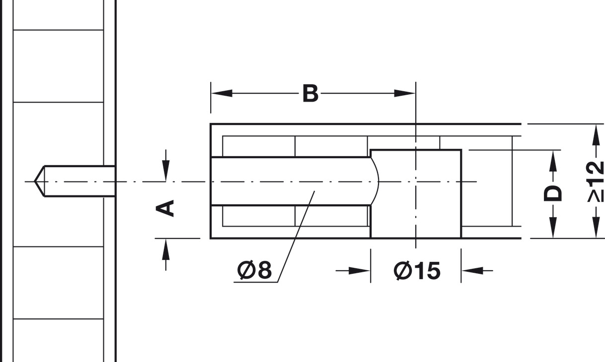 für Holzdicke ab 16 mm, Bohrtiefe D: 12,5 mm, Maß A: 8 mm, vernickelt